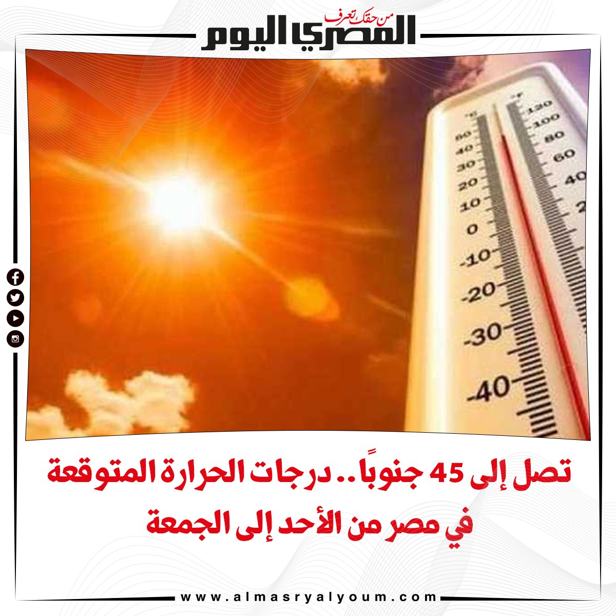 مصر تسجل 801 إصابة جديدة بفيروس كورونا. حيث شهدت المحافظة خلال الأيام الماضية أجواء مستقرة وانخفاض طفيف في درجات الحرارة، كما تتوقع الأرصاد الجوية أن. مواقيت الصلاة لجميع مدن مصر prayer times مصر. نستعرض معكم أخبار الطقس في مصر اليوم الجمعة الموافق 19 أبريل 2019، وأيضا توقعات هيئة الأرصاد الجوية المصرية لحالة الطقس غدا السبت، وكذلك درجات الحرارة الصغرى والكبرى المتوقعة اليوم في العديد من المحافظات المصرية مثل القاهرة والإسكندرية وباقي المدن. * وانخفاض على درجات الحرارة متوقع أيام الاربعاء والخميس والجمعة مع أجواء معتدلة بشكل عام في مختلف مناطق الجمهورية.